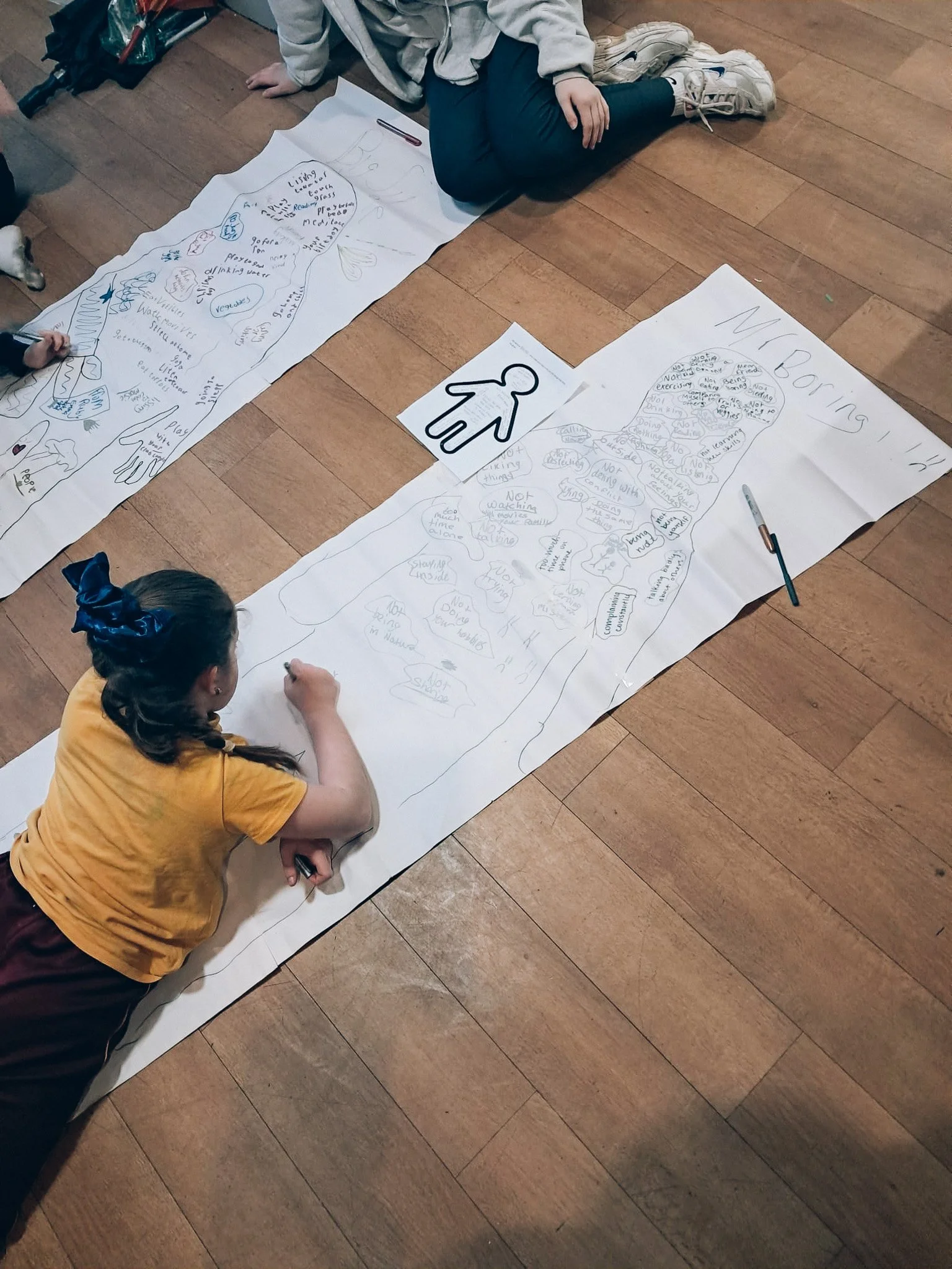 We then measured each child up against the wall and took note of their heights, so we are going to see how tall each of us gets across the year. We talked about what helps someone grow as a person, and what might hold them back. After sharing ideas, we drew the outline of two of the kids in club, one named Ms Excited to Grow and the other Mr Does Not Want to Grow, and filled them with all the things we came up with. It was great seeing all the kids get so involved in what makes someone grow vs what stops someone from growing. They came up with all different ideas, ones that me nor any other adult in the room could come up. One of the outlines quickly filled up with all the different ways we can grow, and we still refer back to it today.